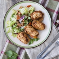 Rinse the turkey fillet, cut it along the grain into portion-sized pieces 1 cm thick, pound to a thickness of 0.5 cm, and sprinkle with salt and spices.
