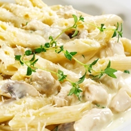 Chop the smoked turkey meat, celery, and peeled apple, and mix with the pasta.