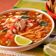 Add the broth, salsa, finely chopped tomato, finely chopped pepper, chopped green onion, cilantro, and corn. Cook for 5-10 minutes until the soup is heated through. Serve with corn chips.