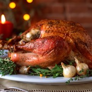 Shortly before the cooking is finished, remove the fat to create a golden crust. Strain the juices from the roast and remove the fat. Serve the turkey with this juice.