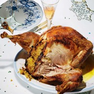 Serve the turkey, cut into pieces, alongside sweet bulgur.