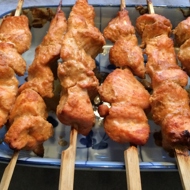 Soak wooden skewers in water for 10 minutes to prevent them from burning.