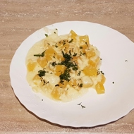 Melt the butter with the sunflower oil in a pot, stir in the flour and cook for 2 minutes, then slowly pour in the milk while stirring constantly, and cook for another 5 minutes. Add salt, crumble the bouillon cube, and mix well.