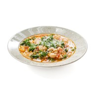 Serve the Tuscan soup drizzled with olive oil and topped with Parmesan cheese.