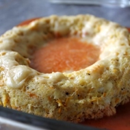 Mix the tomato sauce with the coconut milk, and season with salt and pepper to taste. Spread a thin layer of sauce on the bottom of a deep baking dish. Invert the cooled soufflé into the prepared baking dish and remove from the mold. Pour the remaining tomato-coconut sauce over it, sprinkle with grated Parmesan, and return to the oven for 10 minutes.