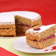 Allow the finished cake to cool and cut it horizontally into two equal parts, layering with currant jam. Refrigerate for 2 hours.