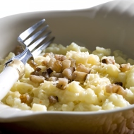 Drop the pieces of dough (dumplings) into salted boiling water and cook at a gentle boil for about 10 minutes. When the dumplings float to the surface, transfer them with a slotted spoon to a colander or sieve to drain.