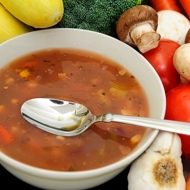 Peel the tomatoes, slice them, and combine with the onion, potatoes, and eggplants. Pour cold broth over the vegetables and bring to a boil. Add salt, pepper, bay leaf, and cook until done.