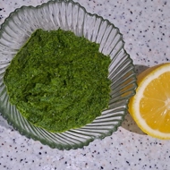 Add the lemon juice, chopped dill, and parsley to the blender bowl.