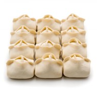 Roll each piece into a perfectly shaped ball. Using a rolling pin, flatten each ball into a disc about 2 mm thick. Place 1 tablespoon of filling on the rolled-out disc. With your thumb and index finger from both hands, pull the dough from the edges towards the center and quickly pinch the two edges together, pressing them firmly with your fingers.