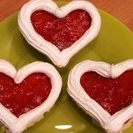 For the meringue, beat the egg whites with a pinch of salt until foamy. Add sugar and continue beating until the mixture is thick, dense, and holds its shape well. Transfer the egg white mixture into a piping bag (if you don't have a piping bag, you can use a plastic bag and cut off a corner). Carefully outline heart shapes. Place in the oven. Dry at a temperature of 100°C (212°F) for 45–50 minutes. Using the same stencil, cut out heart shapes from the cooled sponge cake. If desired, you can slice the hearts horizontally and soak them (with syrup, jam, or cream). Spread with jam. Top with a meringue heart.