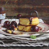 Vanilla Cheese Pancakes with Chocolate Sauce and Cherries