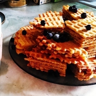 For each maxi-cake, you need 5 waffles. Spread honey on one side of each layer. Press them together and place in the refrigerator for 1–2 hours.