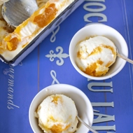 Pour the cold condensed milk into a bowl, add the vanilla seeds, and mix well. In a separate bowl, whip the cream until stiff peaks form. Gently fold the whipped cream into the condensed milk one spoonful at a time. Spoon 1/4 of the ice cream into a container. Top with a layer of mango puree. Then add another layer of ice cream followed by another layer of puree. Repeat a couple more times. You should end up with 4 layers of ice cream. Close the container and freeze for 5 hours or overnight.