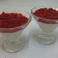 Pour milk into a saucepan and heat on low for 10 minutes. Add gelatin, stirring constantly until it dissolves. Add vanilla sugar. Slightly increase the heat and add the remaining sugar, stirring until it dissolves.