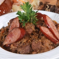 Mix the Worcestershire sauce, chicken broth, and 2 tablespoons of flour. Pour into the skillet with the meat and bring to a boil. Reduce the heat and simmer for 3 minutes until the meat is tender and the sauce thickens. Add the bacon and heat through. Serve immediately, garnished with parsley.