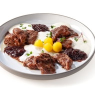 Add red wine, demi-glace, and butter. Heat until the sauce becomes smooth and thick.