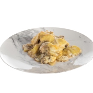 This dish has Russian-French origins. It appeared in the mid-19th century under the name 'Meat Orloff' (more precisely - Veal Orloff). The dish was created by a French chef working for the family of Count Alexei Orlov. Worldwide, this casserole of meat, potatoes, mushrooms, and cheese with béchamel sauce is known by its original name, but in our region, it has adopted the prefix 'a la française.' In the post-Soviet space, a version that differs from the original is known — made with pork instead of veal and often mayonnaise instead of béchamel. However, we recommend preparing the béchamel for a more refined taste.