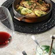 Set the sautéed escalopes aside, then add chopped capers to the skillet with oil and sauté for thirty seconds. Next, pour in the Madeira and let it reduce almost completely. After that, add thinly sliced lemons, pour in the chicken broth, and simmer on high heat for about five to seven minutes.