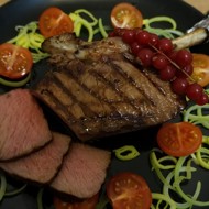 Clean the veal rack, removing all membranes, freeing the bones, and trimming excess, leaving only the ribs.