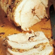 Remove from the oven, let it 'rest' for 20 minutes, slice, and serve drizzled with the juices.