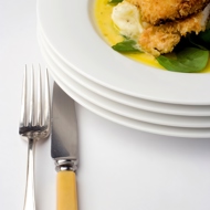 Dry the escalopes well. In a plate, mix the flour with salt and pepper. Dredge the schnitzels in the flour mixture on both sides.