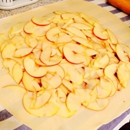 Filling. For the filling, choose sweet and sour apples. Wash each apple, cut it in half, and remove the core. Slice them into very thin slices. If you have a food processor, you can use it.
