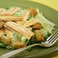 You can use store-bought croutons, but it's better to make them yourself. Cut the crusts off the bread, dice it, drizzle with 2 tablespoons of olive oil, and sprinkle with dried ground garlic. Dry in a toaster oven or regular oven.