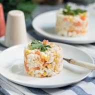 Mix all the ingredients, dress with vegan mayonnaise, and season with salt to taste.