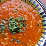 In the pot (where you will cook the soup), heat the vegetable oil. Add the tomato puree and heat until it bubbles.