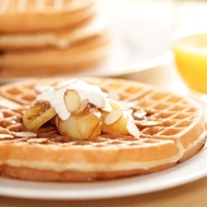 In a bowl, mix both flours, sugar, flaxseed meal, baking powder, and salt. Then add almond milk and yogurt. Mix everything well and bake the waffles as instructed in the waffle maker manual.