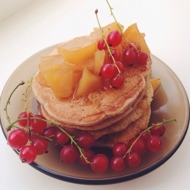 To prepare the pancakes: Mix 240 ml of almond milk with 2 teaspoons of vinegar and 2 tablespoons of flaxseed meal. Let it sit for a while; the mixture should thicken slightly.