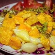 In a small pot (I cooked it in a Turkish coffee pot), add the pumpkin, 2 tablespoons of coconut milk, and curry powder, and simmer on low heat for about 2–3 minutes. It can be served as a side dish or as a standalone meal. Warning: the taste is exotic and sweet.