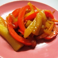 Chop the tomatoes, zucchini, cucumbers, carrots, and bell peppers. Add them to the skillet with the onions in the same order.