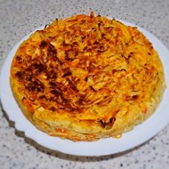 Peel the carrot, wash it well, cut into thin strips, and add to the dish with the chopped ingredients.