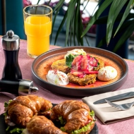 Place the pancake in the center of the plate, accompanied by slices of lightly salted salmon, and optionally with poached eggs and wilted spinach. Serve with sour cream.
