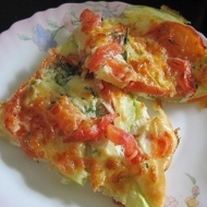 Grease a baking dish with oil, layer the carrots and onions, zucchini, and tomato, season with salt and pepper, and place in the oven for 15 minutes at 200°C.
