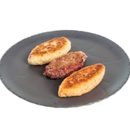 Add one third of the sautéed onions to each meat mixture and mix well.