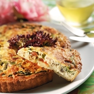 Preheat the oven to 356°F. Grease a pie dish with butter. Cut a circle of parchment paper the same diameter as the dish, place it at the bottom of the dish, and grease it with butter as well. Arrange a few slices of carrot and peas on the paper, keeping in mind that this will be the top of the pie.