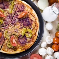 Spread the pizza base with pesto sauce and top with the sautéed vegetables. Place in the oven and bake for 10-15 minutes. Sprinkle the finished pizza with grated Parmesan.