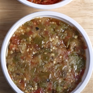 Prepare the sauce 30 minutes before you plan to serve it. Clean and finely chop all the vegetables.