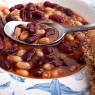 Blend the soup in a blender until smooth. Return it to the pot and add the beans. Season with salt and pepper and gently heat through. Serve in bowls and sprinkle with the remaining thyme.