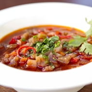 Cut the zucchini, carrot, bell pepper, onion, and eggplant into 1 cm cubes.