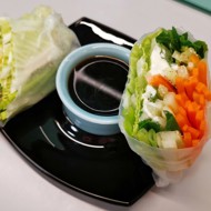 Soak the rice paper in drinking water for a few seconds and place it on a flat surface.