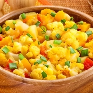 Finely chop the onion. Grate the carrot using a medium grater. Separate the cabbage into florets. Peel the zucchini and cut it into cubes. Remove the seeds from the bell pepper and slice it into strips. Dice the tomatoes.