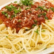 Boil the spaghetti in salted water, drain in a colander, let the water drain off, then transfer them to a skillet and mix well with the sauce.