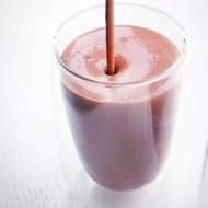 Grate a piece of chocolate. Pour the smoothie into glasses and sprinkle with chocolate shavings.