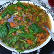 Vegetarian Green Lentil Soup with Spinach