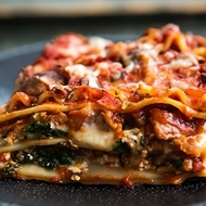 Grease a baking dish with oil, place 2 sheets of lasagna next to each other, and spread sauce over them. Follow with a layer of eggplant and zucchini, and a layer of mozzarella cheese. Continue alternating layers, sprinkling basil leaves over the pasta and drizzling with olive oil.