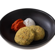 Transfer the patties to a baking sheet lined with parchment paper, brush them with vegetable oil, and place in an oven preheated to 464°F for 7–10 minutes. Alternatively, fry in a skillet with vegetable oil until golden brown. Serve with ajvar and yogurt.